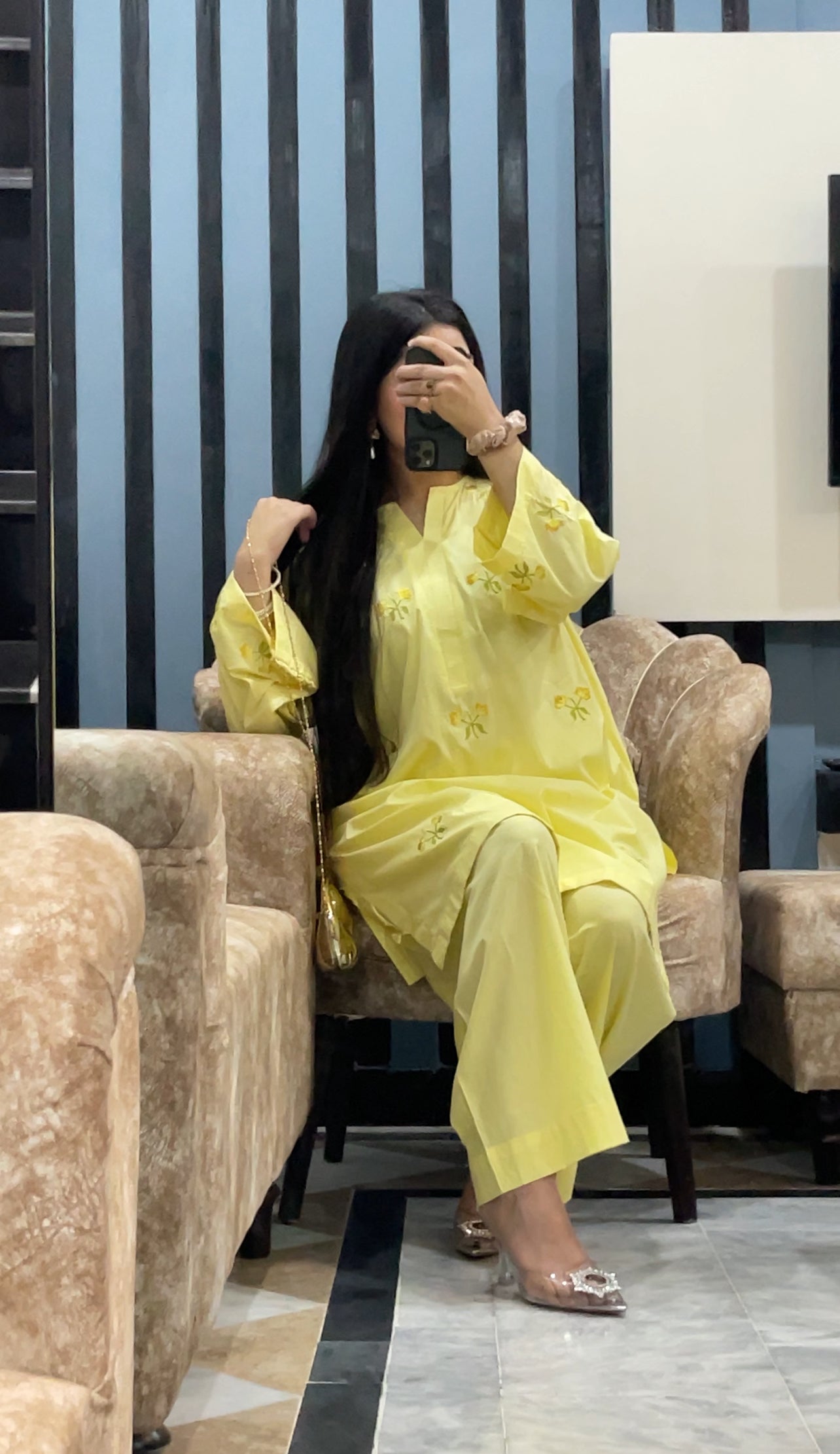 Introducing our vibrant lime yellow lawn fabric, adorned with intricate machine embroidery for a stunning and elegant look. Perfect for adding a pop of color and style to any summer ensemble.